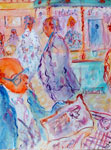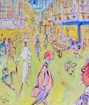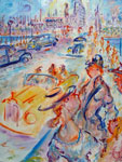 Exhibited for years at Covent Garden and Piccadilly. City scenes normally 30" x 48" and figures from the world of ballet and gymnastics normally 30" x 24" or 24" x 18".