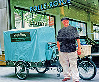Happiest when selling his paintings from a stall or from his tricycle which converts to an exhibition stand.